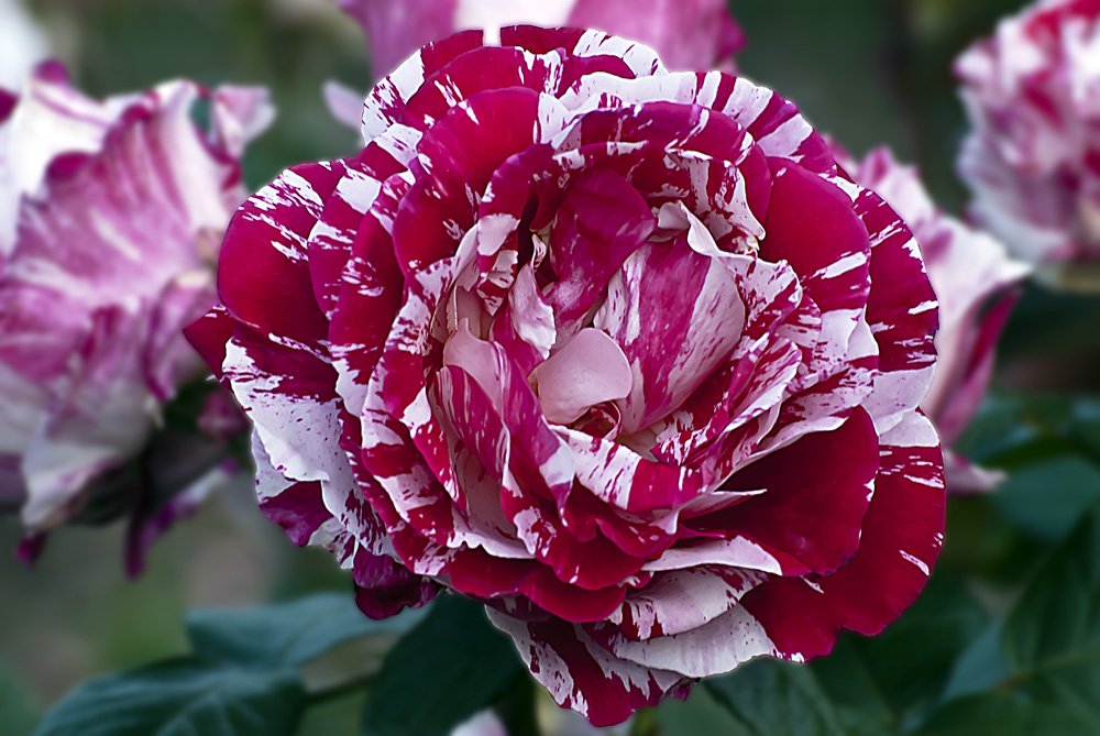 Today I want to present a little Scentimental Rose Splendor in our continue month long feature of the rose flower. Roses are definitely in bloom at this time of year and probably one of the most eye-catching varieties of the rose in the Scentimental Rose. It’s splattering of red and white makes it look like a peppermint candy. But the scent this rose gives off is where this rose is really at. So sweet like nectar. This rose is an all American rose, being the first stripped rose to win the All American Rose Award. It was developed in the US by Tim Caruth and introduced to the world in 1997.